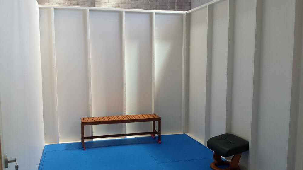 Surrounding our training area, we have 183cm high, 4cm thick protective wall pads with a density of 200kg/cbm.