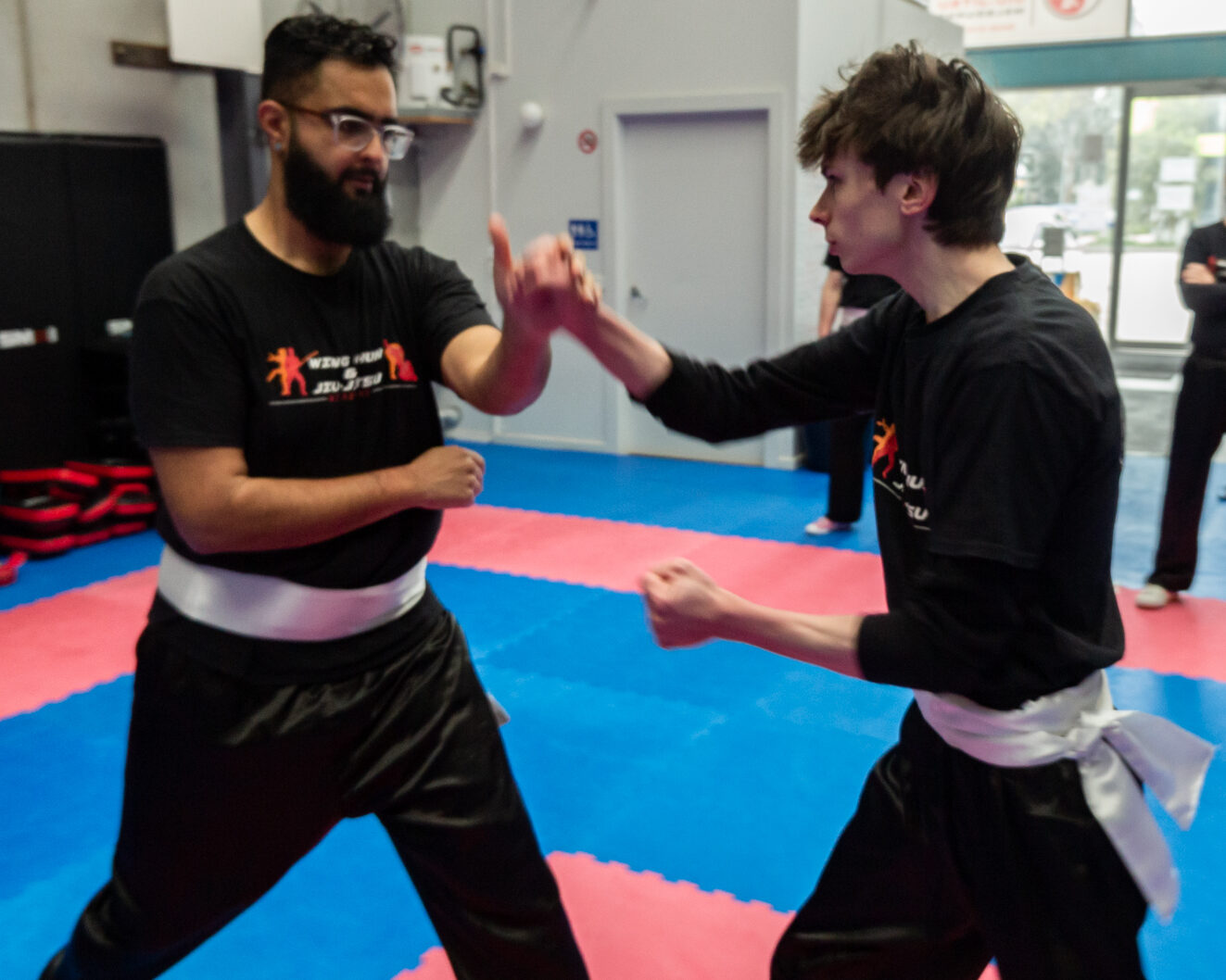The proper use of techniques and their application is demonstrated in each martial arts class. Students are encouraged to discuss what is taught and the situations in which martial arts techniques should and shouldn’t be used, problems they are having with particular martial arts techniques, and self-defence issues more generally. The instructor will give personal attention to students to enable them to learn and practice martial arts techniques of varying levels of difficulty and to prepare for grading when appropriate. Sparring is introduced to the curriculum as students advance. Wing Chun Kung Fu students are taught various “forms” and encouraged to practise them most classes. There are no forms in Gracie Jiu-Jitsu (Brazilian Jiu-Jitsu).